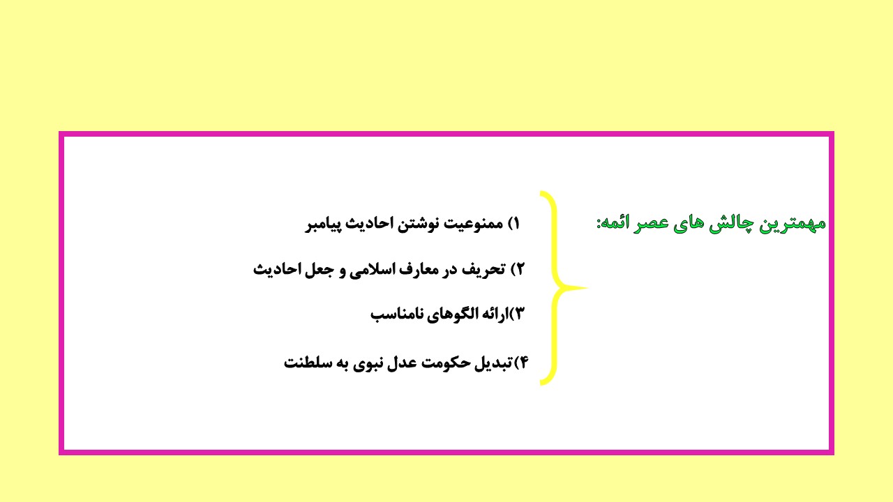 1)معرفی خود به عنوان نسل اصحاب رسول خدا- تحول فرهنگی ایجاد شده در عصر امامان