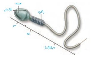 *مطابق شکل، اسپرم انسان از سه بخش سر، تنه و دم تشکیل شده است.