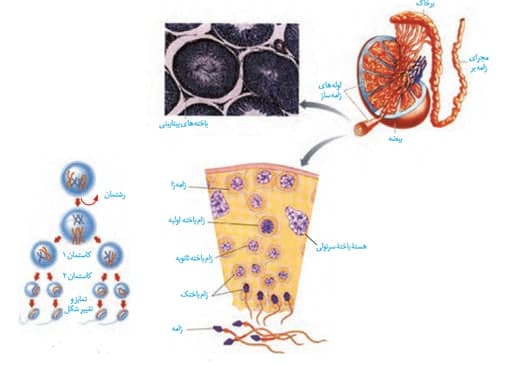در شکل بعدی، میریم سراغ ساختار درون بیضه و روند اسپرم زایی رو با هم مشاهده می کنیم:
