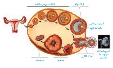 *در هنگام تخمک گذاری، اووسیت ثانویه، اولین جسم قطبی، تعدادی از یاخته های تغذیه کننده و مایع درون فولیکول از سطح تخمدان خارج می شوند.