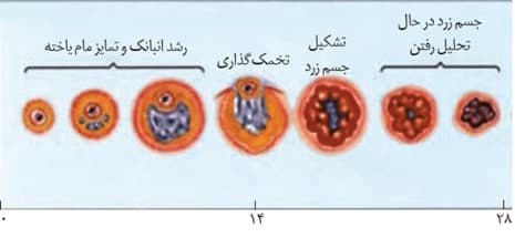 *تعدادی از یاخته های تغذیه کننده فولیکول باقی می مانند که در نهایت ابتدا جسم زرد و سپس به جسم سفید تبدیل می شوند.