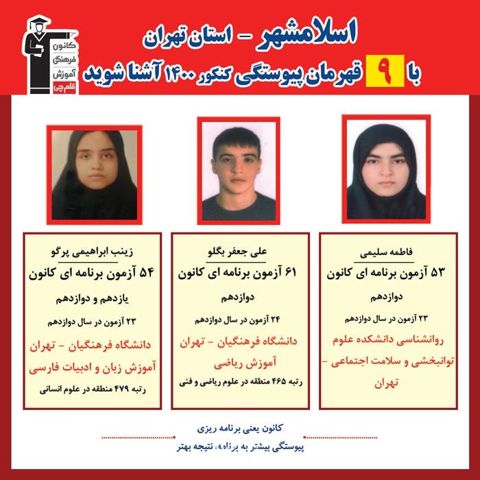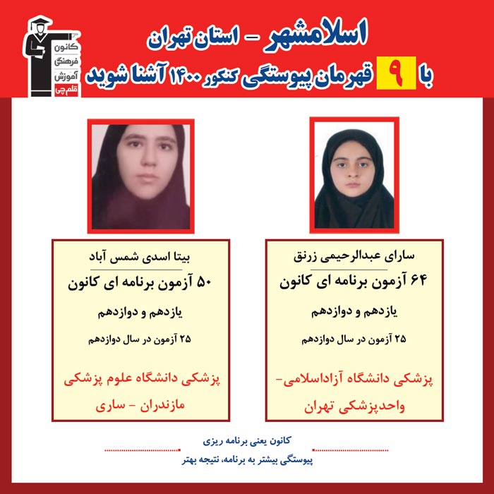 با 9 نفر قهرمانان پیوستگی اسلامشهر درکنکور 1400 آشنا شوید