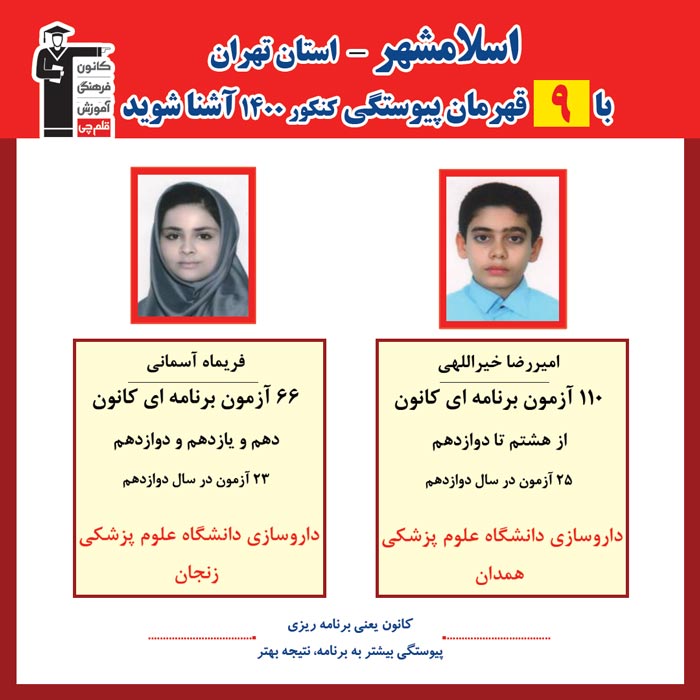 با قهرمانان پیوستگی اسلامشهر درکنکور 1400 آشنا شوید