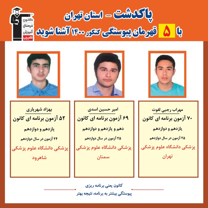 با قهرمانان پیوستگی پاکدشت درکنکور 1400 آشنا شوید