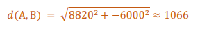 که با جایگذاری مختصات نقاط در فرمول به دست می آید :