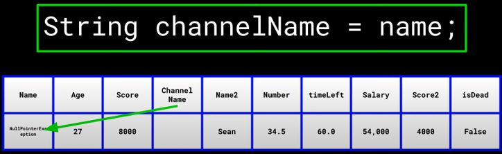 اجازه بدید با مثال قفسهمون مطلب رو بهتر جا بندازیم. این عمل کامپیوتر مثل اینه که به جای ایجاد یه جعبه جدید با لیبل «نام کانال» و ذخیره محتوایی مانند NullPointerException درون اون، صرفاً پایین جعبهی «نام» لیبلِ «نام کانال» میخوره.
