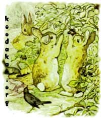 سپس خانم خرگوشه سبد و چترش را برداشت و به جنگل رفت او مي خواست از نانوائي،كمي نان و پنج عدد كلوچه كشمشي بخرد.