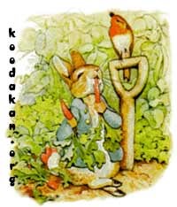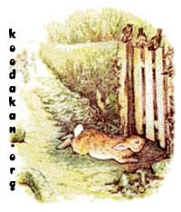 او برگشت آرام و بي صدا حركت مي كرد. ناگهان صداي خراشيده شدن زمين توسط يك بيل را شنيد . او زير بوته اي خزيد ولي هيچ اتفاقي نيفتاد . كم كم از جايش بيرون آمد و روي يك چرخ دستي كه آن نزديك بود پريد و همه چيز برايش قابل ديدن شد. اولين چيزي كه ديد آقاي مك بود كه خم شده بود و پياز ها را از زمين بيرون مي اورد. پشت او بطرف پيتر بود و آنطرفش هم در باغ بود.