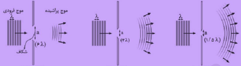 نکته: هرچه ابعاد شکاف به طول موج نزدیکتر باشد پدیده پراش شدید تر خواهد بود.
