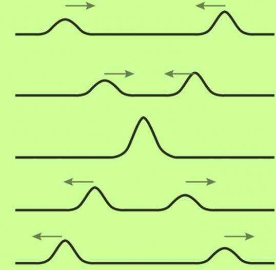 اگر تیپ ها هنگام هم پوشانی، جا به جایی بزرگ تری ایجاد بکنند، تداخل سازنده است. در لحظه هم پوشانی کامل جا به جایی محیط بیشینه است.