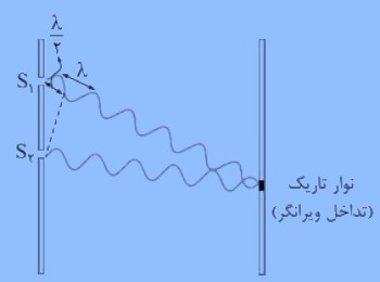شکل زیر طرحی از آزمایش یانگ برای تداخل امواج نوری را نشان می دهد. نور حاصل از یک چشمه تک فام بر یک شکاف می تابد. نور پس از عبور از این شکاف، پراشیده می شود آنگاه از دو شکاف عبور می کند و مجددا پراشیده می شود. موج های حاصل، با یکدیگر تداخل می کنند و نقش حاصل از این تداخل را می توان روی پرده ای که در ناحیه سمت راست دو شکاف قرار دارد مشاهده کرد.