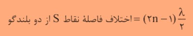 اختلاف فاصله نقاط S (صدای کمینه) از دو بلندگو مضرب فردی از λ/2 است.