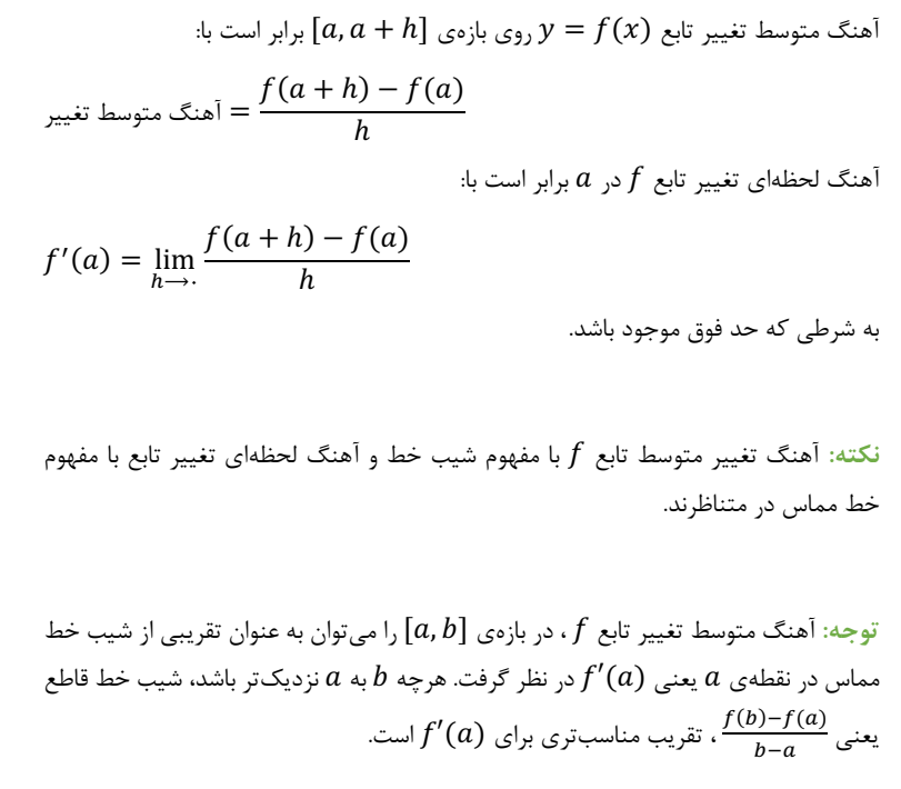آهنگ متوسط تغییر و آهنگ لحظهای تغییر