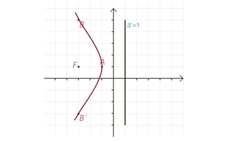 در این صورت نقاط B و 'B که هم طول با F و به فاصله 2a=4 از F یعنی (5 و3-)B و (3- و 3-) 'B نیز بر سهمی واقع اند.