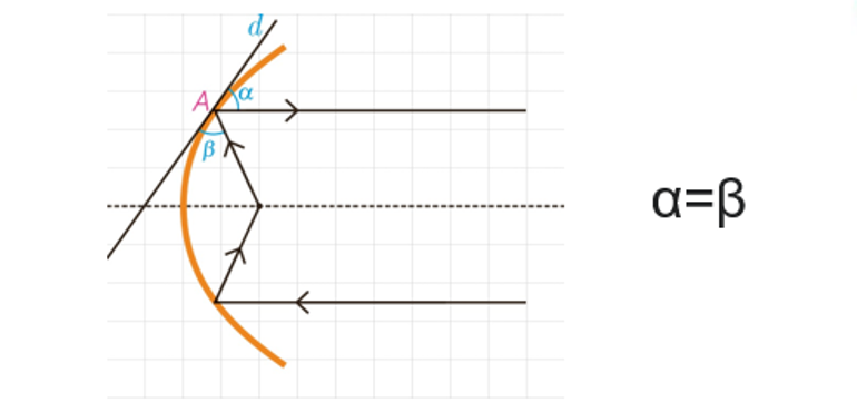 اگر شعاع نوری از کانون سهمی بگذرد و به بدنه سهمی برخورد کند، شعاع انعکاس آن موازی محور سهمی است و برعکس، یعنی هر شعاع نوری که موازی محور سهمی بر سهمی بتابد، شعاع انعکاس آن از کانون سهمی عبور می کند.