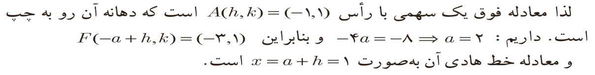 4. خط هادی یک سهمی به معادله X=13/4 است. هر پرتویی که از نقطه (2- و 5.4-) بر این سهمی بتابد، در امتداد محور باز می تابد. این سهمی محور x را با کدام طول قطع می کند؟ (متوسط _ سراسری تجربی _ 94)