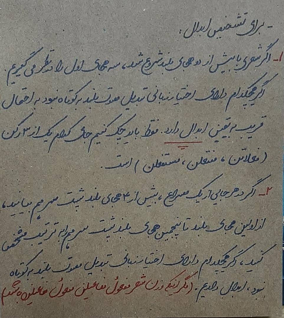 🔵 لغت ابدال یعنی عوض و بدل کردن ؛ شاعر میتواند به جای دو هجای کوتاه کنار هم ، یک هجای بلند بیاورد . 🔵