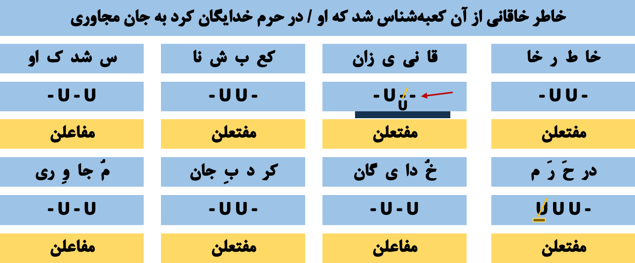 🔵 وزن اصلی : مفتعلن مفاعلن مفتعلن مفاعلن 🔵