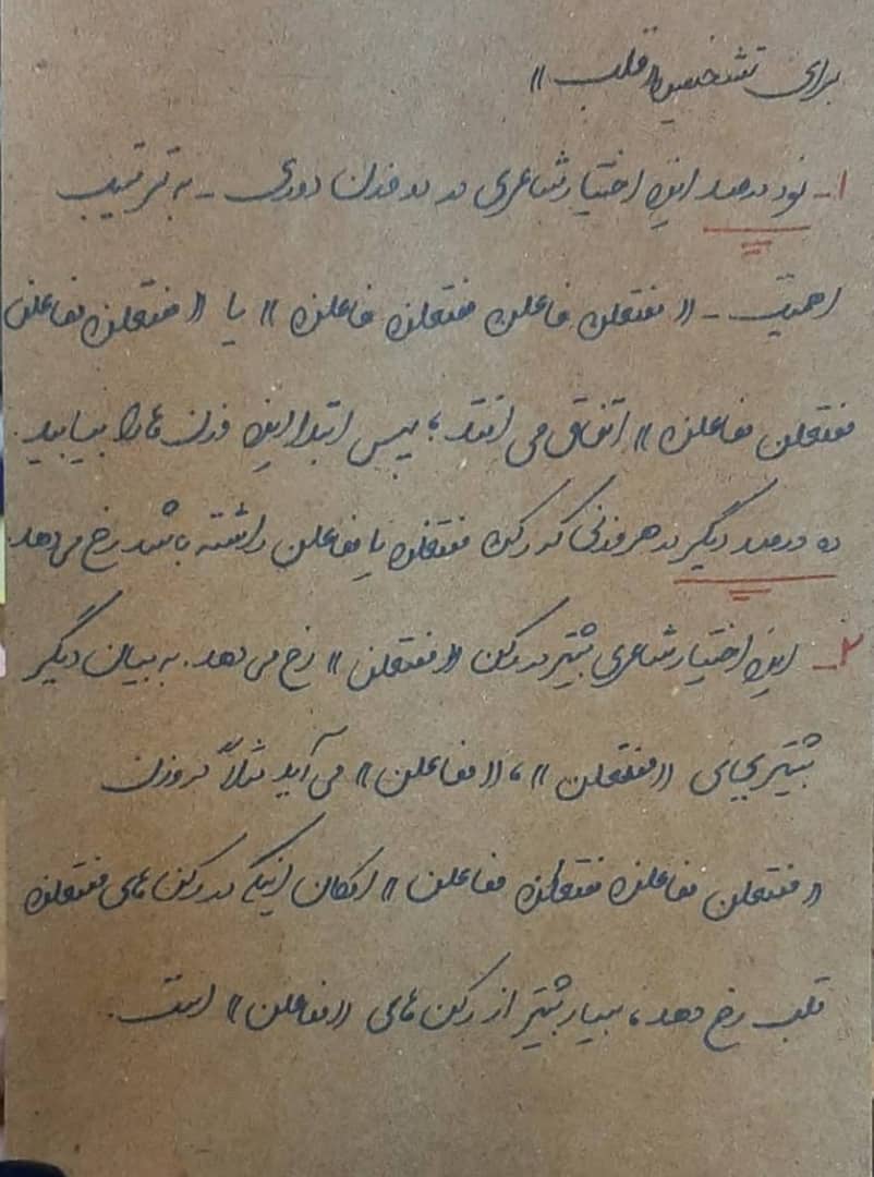🔵 این یعنی در رکن دوم مصراع اول ، اختیار قلب صورت گرفته است . 🔵