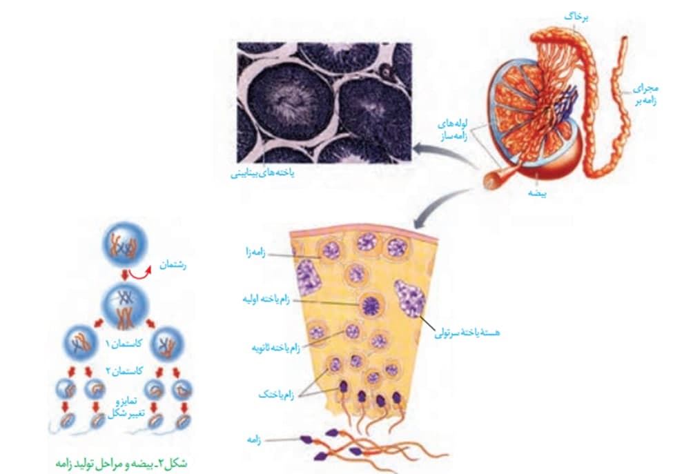 در شکل بعدی، میریم سراغ ساختار درون بیضه و روند اسپرم زایی رو با هم مشاهده می کنیم: