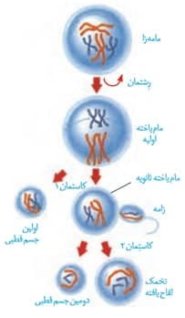 *اووسیت اولیه و اووسیت ثانویه طی تقسیم میوز خود، یاخته هایی با اندازه های نابرابر تولید می کنند.