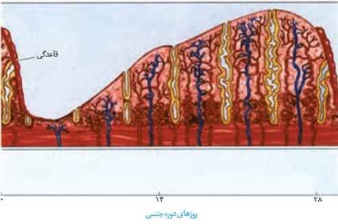 شکل بالا تغییرات در لایه آندومتر دیواره رحم رو نشون میده که طی چرخه رحمی رخ می دهد.