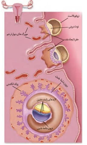 *آنزیم های مترشحه از تروفوبلاست که دیواره داخلی رحم را تخریب می کنند، باعث فراهم کردن موادمغذی مورد استفاده جنین در مراحل اولیه رشد و نمو می شوند.