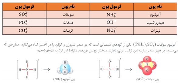 به یون هایی که از دو یا چند اتم یکسان یا متفاوت تشکیل شده باشند، یون های چند اتمی می گویند؛ مانند