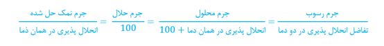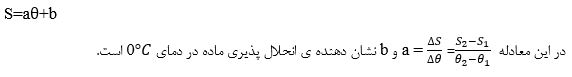 نکته: معادله ی خطی که رابطه ی بین انحلال پذیری و دما را نشان می دهد به شرح زیر است: