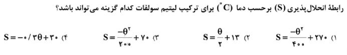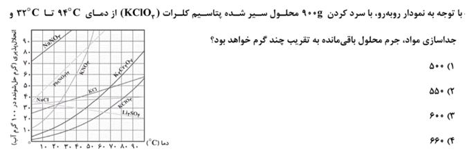 یکی از عوامل مؤثر بر انحلال پذیری مواد در آب، دما است. با توجه به شکل روبه رو: