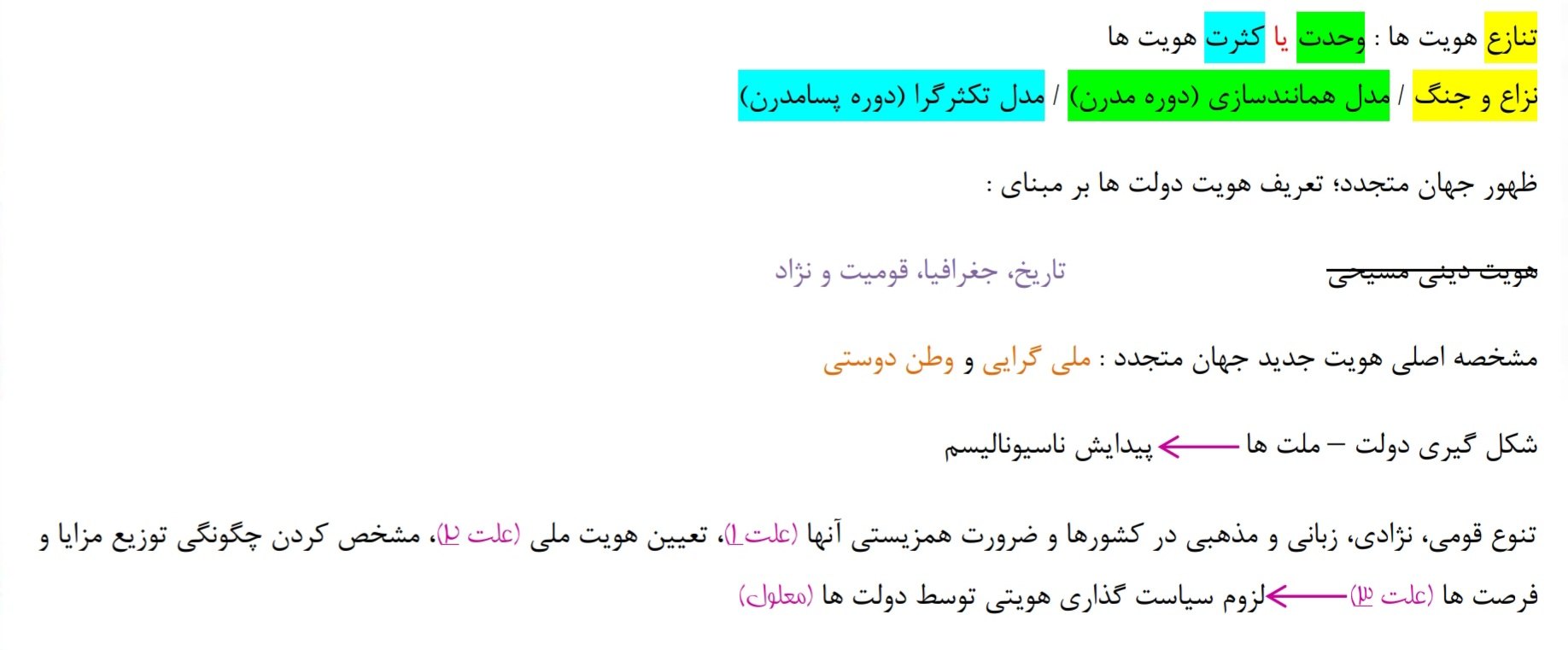 1) پیدایش ناسیونالیسم – تنازع و درگیری میان گروه ها و افراد گوناگون – ثبات هویت ها