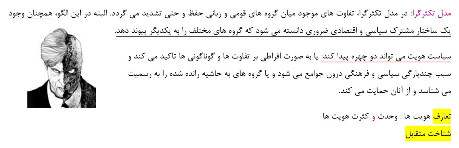 نکته: همانندسازی سیاستی بود که دولت ها برای از بین بردن تفاوت های هویتی گروه های مختلف و یکسان سازی آنها در پیش گرفتند.