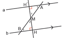 دو خط a و b موازی و پاره خط AB مورب ، در نتیجه دو زاویه A1 و B2 با هم برابرند.