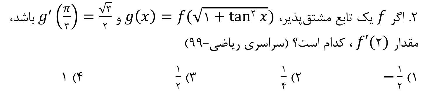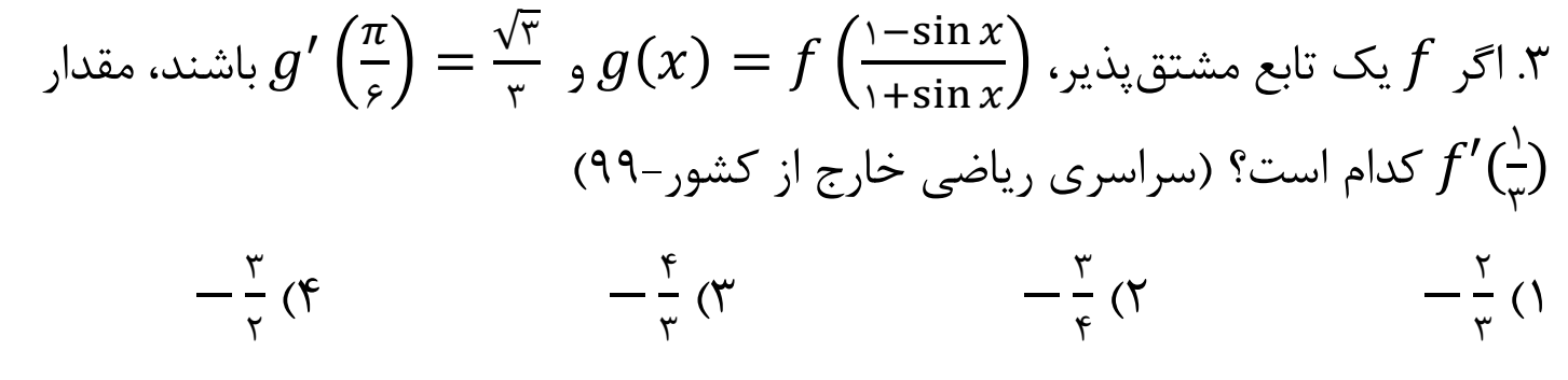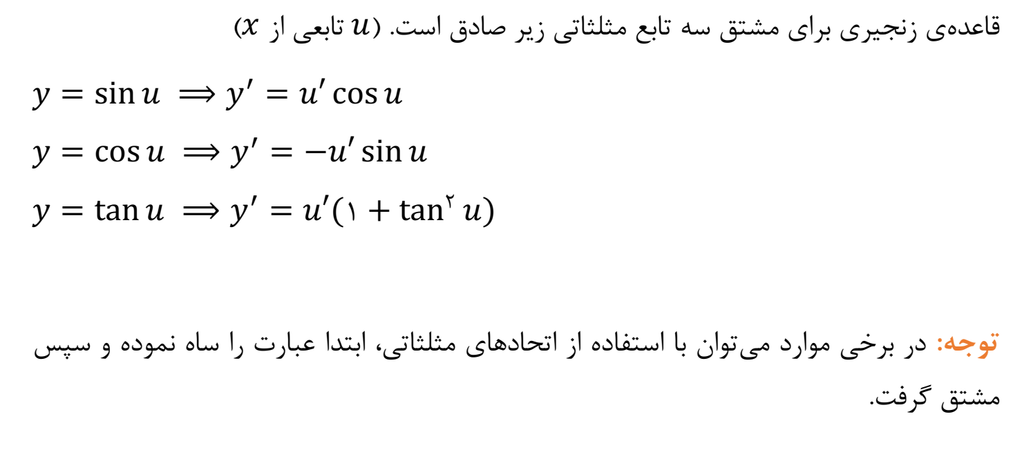 کاربرد قاعده زنجیری در توابع مثلثاتی