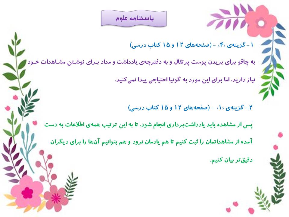 دانش آموزان عزیز سلامامیدواریم مثل همیشه حالتان خوب باشد و هر روز بیشتر از دیروز تلاش کرده و به موفقیت نزدیکتر شوید.در ادامه تصویر نمونه سوالات درس 1 علوم دوم دبستان را برایتان گذاشته ایم.در اینستاگرام نیز با ما همراه باشید.