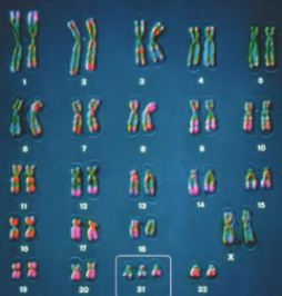 کاریوتیپ تهیه شده، یک فرد مونث مبتلا به سندروم داون را نشان میدهد چرا که دارای سه کروموزوم شماره 21 است.دقت کنید علت بروز این حالت این است که یکی از یاختههای جنسی ایجاد کننده فرد، به جای یک کروموزوم شماره 21، دارای دو کروموزوم 21 بوده است.در نقطه وارسی دوم چرخه یاختهای((G2، اگر پروتئینهای دوک تقسیم یا عوامل لازم فراهم نباشد، نقطه وارسی اجازه عبور از این مرحله را نمیدهد