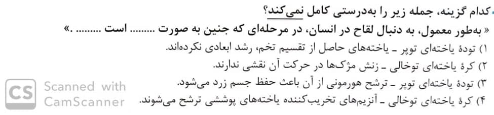 توده سلولی توپر مورولا و توده توخالی بلاستوسیست است.ترشح هورمون حفظ کننده جسم زرد از تروفوبلاست است نه مورولا(غلط بودن گزینه 3)