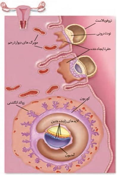 3-طی فرایند جایگزینی بلاستوسیست از سمت توده درونی وارد ضخامت رحم می شود.