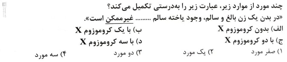 همه موارد یافت میشوند.الف:گلبول قرمز/ب:اووسیت ثانویه/ج:سلول های پیکری/د:در مرحله آنافاز میوز دو اووسیتی که با اسپرم دارای کروموزوم ایکس لقاح داده.