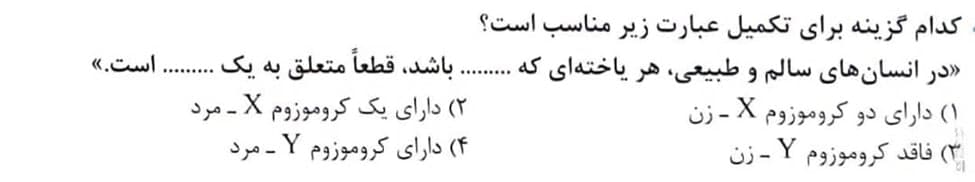 گزینه یک:سلول های دو هسته ای قلب یک مرد/گزینه دو:اووسیت ثانویه یک زن/گزینه سه:گلبول های قرمز هر دو جنس
