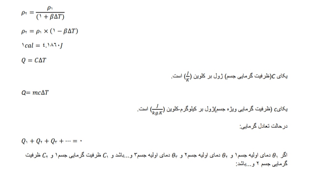 حفظیات مهم فصل دما و گرما از فیزیک دهم تجربی