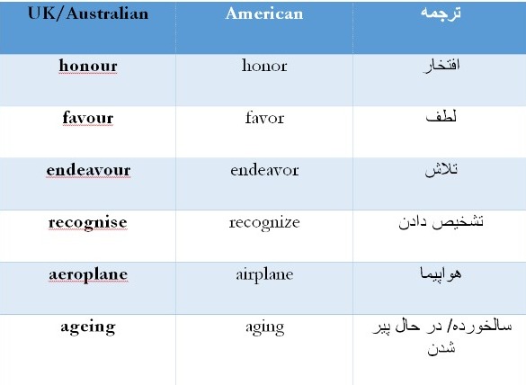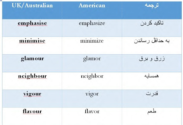 تفاوت املای واژگان انگلیسی در آمریکا و بریتانیا