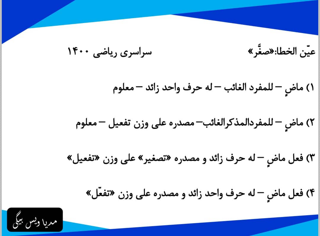 مبحث تدریس شده :ثلاثی مزید و ثلاثی مجرد درس۳و۴ عربی دهم