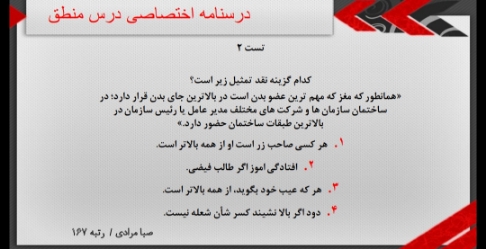 فایل زیر قسمتی از کلاس منطق و فلسفه گروه برترها با تدریس صبامرادی رتبه ۱۶۷ کنکور می باشد.