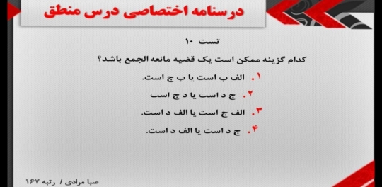 مبحث تدریس شده : قضیه شرطی و قیاس استثنائی درس ۹ منطق دهم