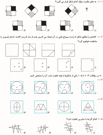هوش تصویری و فضایی_نمونه سوال آمادگی برای آزمون +پاسخ تشریحی