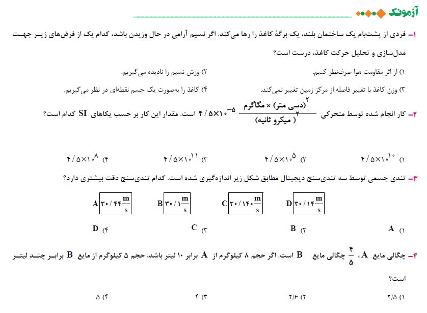 درسنامه فیزیک جهت آمادگی آزمون 7 فروردین تهیه شده است