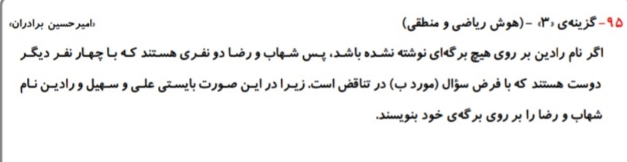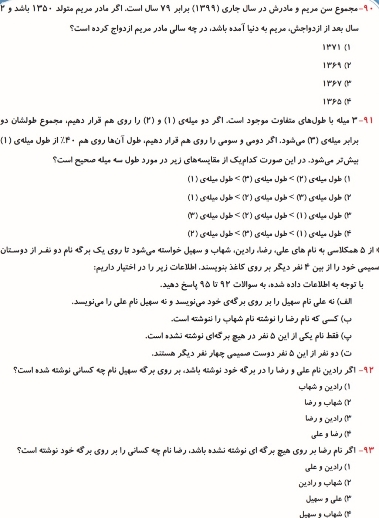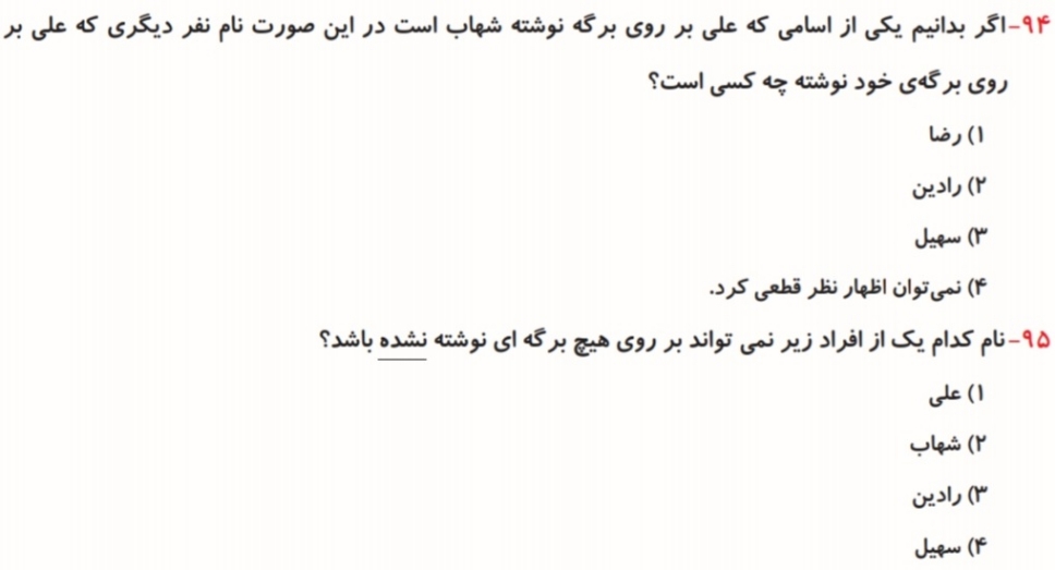 نمونه سوال هوش ریاضی و منطقی آزمون تیزهوشان کانون قلم چی به مناسبت هفته کتاب و کتابخوانی