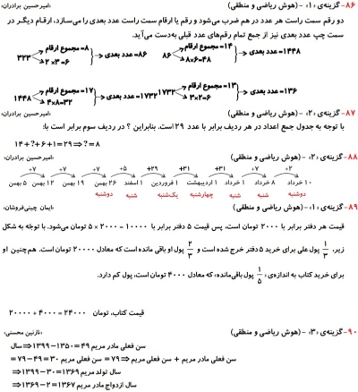هوش ریاضی و منطقی_نمونه سوال آمادگی برای آزمون + پاسخ تشریحی