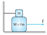 در شکل روبرو ضریب اصطکاک جنبشی بین کلیۀ سطوح است . نیروی افقی F به جرم M شتاب a را می دهد . F کدام است ؟